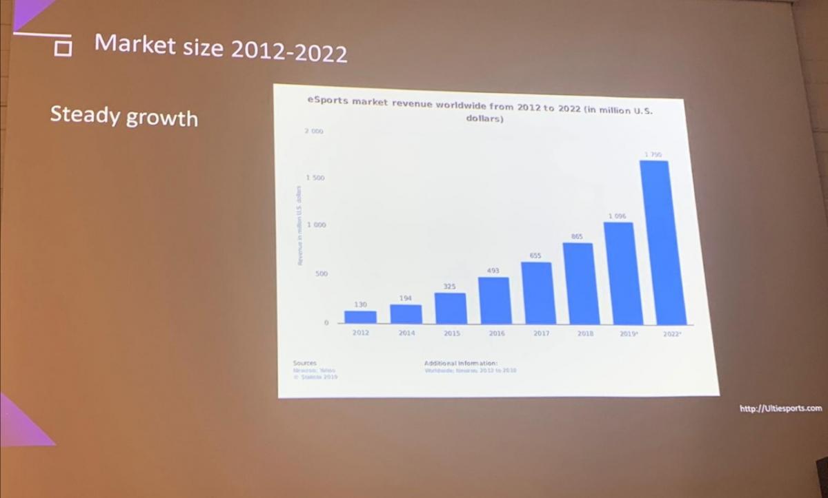 Talousjohtajana (siis kamarin rahastonhoitaja, TREAS) minua kiinnosti tottakai myös talouspuoli. Tänä vuonna E-sports ylittää yli miljarin dollarin rajan. Ennusteen mukaan vuonna 2022 lähennellään jo kahden miljardin dollarin rajaa, kun vuonna 2012 on oltu 130miljoonassa. Kasvu on siis huikeaa. Ajattelinkin tämän innostamana sponsoroida lisää poikieni peliharrastuksia. Yhtään ei oo oma lehmä ojassa…