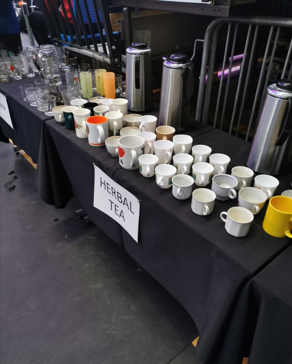 Knoppitietona muuten sellainen, että Viron aamu TV:ssä oli pyydetty ihmisiä lahjoittamaan ylimääräisä astioitaan maailmankokouksen käyttöön, sillä näin valtavaa määrää mätsättyjä astioita oli aika hankala löytää. Näin ollen iltajuhlissa käytettiin ihmisten lahjoittamia lautasia, laseja ja mukeja tarjoiluun; rennosti eriparisina. Myös gaalassa tullaan käyttämään eriparilautasia, ne on varmastu kiva lisä kattauksessa. Tosi hyvä idea!