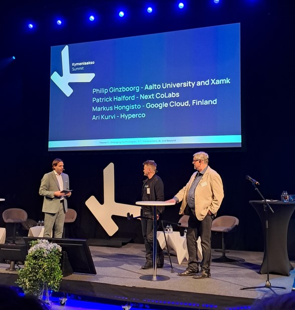 Päivän kolmas ja viimeinen pääosio käsitteli datakeskuksia ja tekoälyn mahdollisuuksia alueellamme ja yleisesti ihmisten elämässä. Näistä olivat keskustelemassa mm. Markus Hongisto Google Cloudilta ja Patrick Halford Next CoLabsilta. Ihmisten osaamista tekoälyratkaisujen käytössä on tärkeää edistää, vaikka osa asioista hoituukin yhä parhaiten kasvokkain tapahtuvalla kanssakäymisellä.