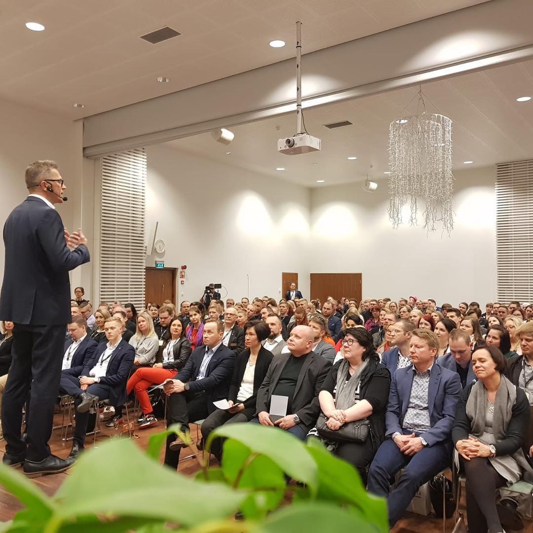 Perjantain yksi kohokohdista oli ehdottomasti Jari Sarasvuon keynote-puheenvuoro, joka käsitteli johtamista, jossa ei olla teennäisten roolien vankina, vaan kohdataan toinen ihminen aidosti - ilman filttereitä. Yleisöstä löytyi myös tulevaisuuden toivo, kenties uuden sukupolven JC, joka pääsi Sarasvuon kanssa loistamaan lavalle. Lapset <3