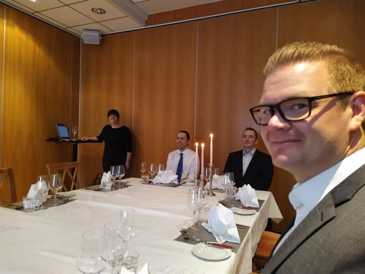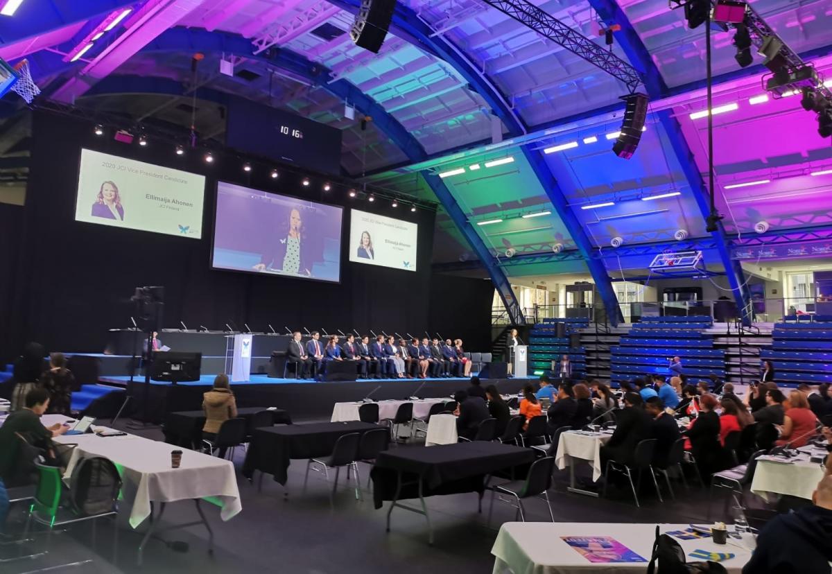 Keskiviikkopäivänä ohjelmassa oli jälleen upeita koulutuksia sekä Digital Innovation Day -kokonaisuus. Lisäksi keskiviikon ohjelmaan kuului maailman debatointikilpailu sekä puhekilpailu. Koska Kotkassa on debattikilpailu ollut muutaman vuoden kuuma peruna, suurin osa porukasta suuntasi kuuntelemaan kansainvälistä väittelykilpailua. Suomea edustamassa oli Helsingin Nuorkauppakamarin joukkue, joka voitti vuonna 2018 Suomen kansallisen kilpailun.